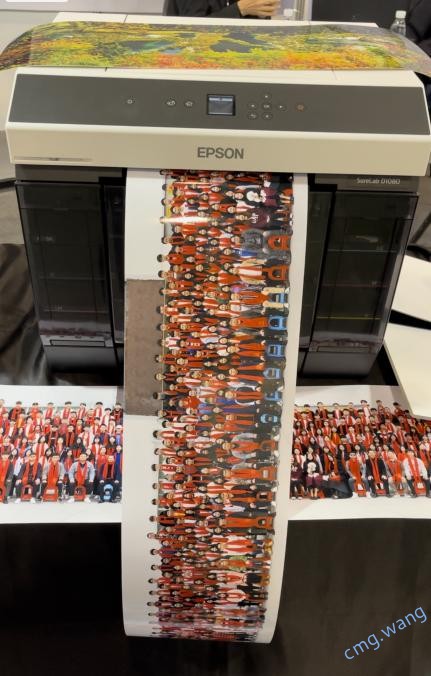 作为中国人像学会的官方合作伙伴,展会现场爱普生D1080连续不间断地为其输出了百余张的长达一米的人像大合影,在保证照片输出精度及色彩表现的同时,也展现了D1080的高产能、耐久性强的优势,并且全新的喷嘴检测技术,打印品质也将得到进一步提升。