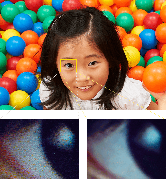 的话将照片放大后会看到线条状和颗粒状的瑕疵,而DNP的热升华打印机可以柔和的处理这些瑕疵(※)