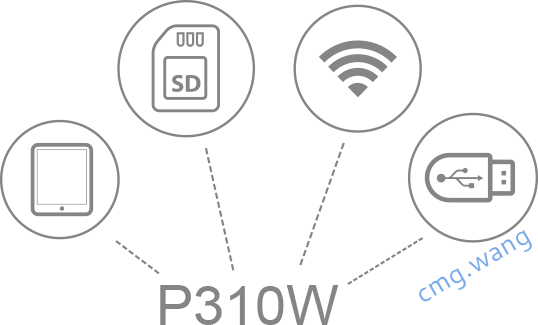 P310W支援无线连结, 可分享多人使用丶快速丶方便,同时亦支援多种记忆卡格式丶USB外接装置,让消费者可以轻松使用自己的储存媒体丶无线传输配备打印相片。
