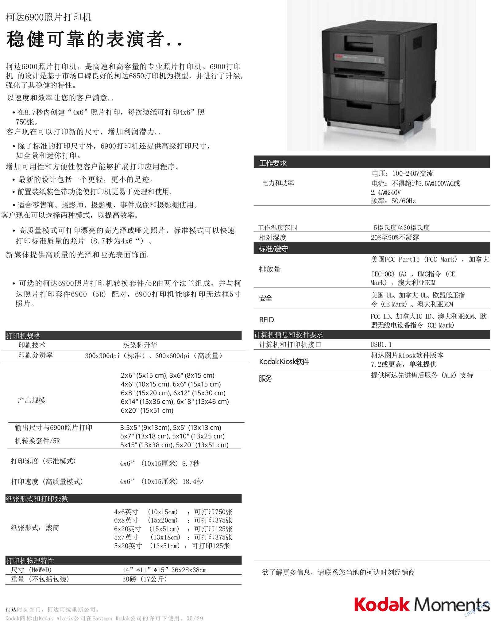 Kodak 6900 Photo PrinterA robust and reliable performer.The high-speed, high-volume and high-quality Kodak 6900 Photo Printer is the only thermal printer in today’s market that delivers patented therm