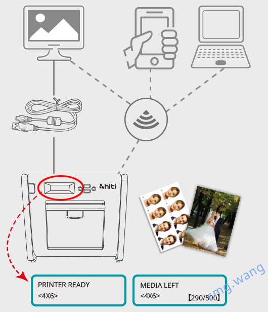 HiTi P525L 同样支援计算机传输打印、闪存卡打印与无线打印,并搭载多国语言介面LCD单萤幕与操作键方便用户即时了解打印状态,用户也可通过下载诚研科技的应用软件来追踪打印状态。