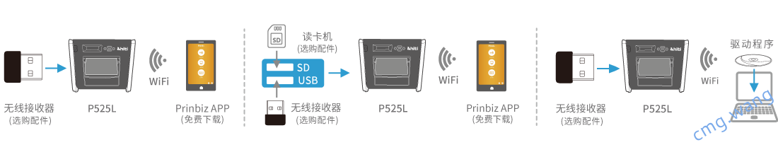分别用于手机Prinbiz APP也可透透WiFi连结到笔记本电脑上进行无线传输打印。