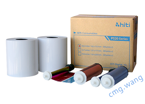 P520L/P525L滚筒式热升华打印机专用相片耗材, 每一箱耗材共含有2 卷相纸及2卷色带