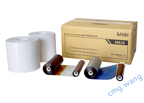 M610热升华打印机专用相片耗材每一箱耗材共含有2卷相纸及2卷色带。4x6"每箱1,500张及6x8"每箱750张。