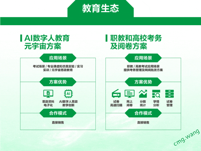 为顺应国家教育政策的号召与数字化转型的浪潮,积极布局教育生态领域,同众多生态合作伙伴一起,将自身在硬件产品领域的数据采集优势与生态伙伴的共创应用平台深度融合,通过人工智能技术,共同推出一系列前沿的教育数字化方案,覆盖从K12基础教育到高等职业全职教育阶段,深度渗透各大专业学科。